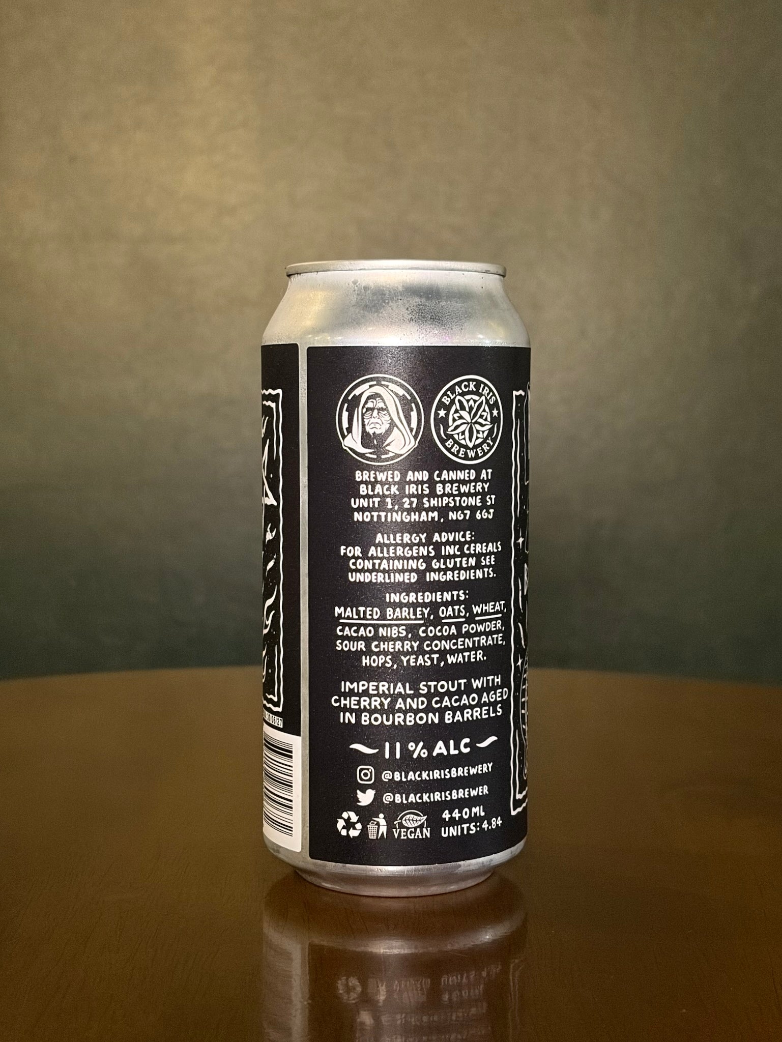 Imperial stout with cherry and cacao aged in bourbon barrels.